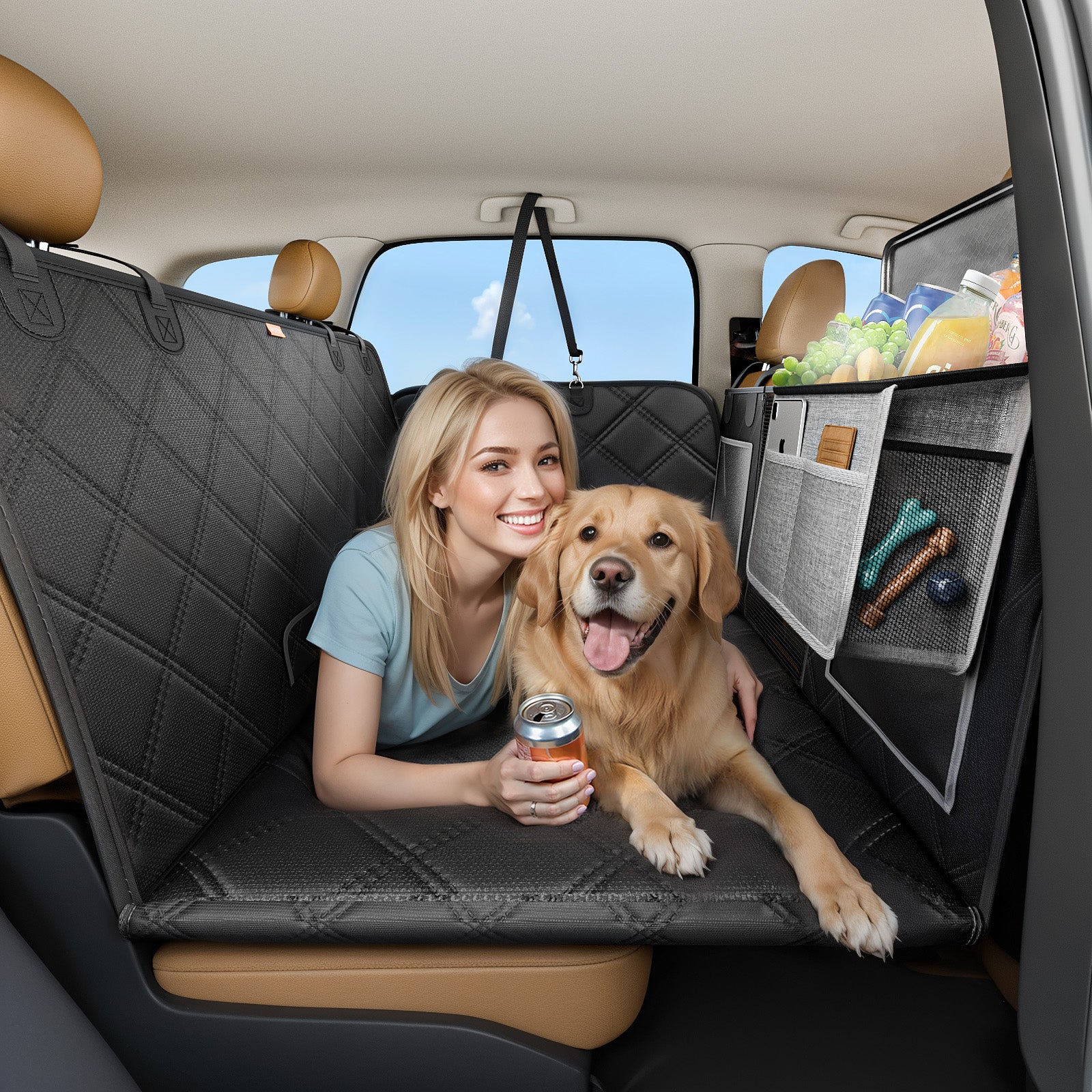 DROEDO Dog Car Seat Cover for Back Seat,Sturdy Hard Bottom Dog Car Seat Extender Supports Up to 500 Pounds,Waterproof Dog Car Hammock for Car SUV Truck